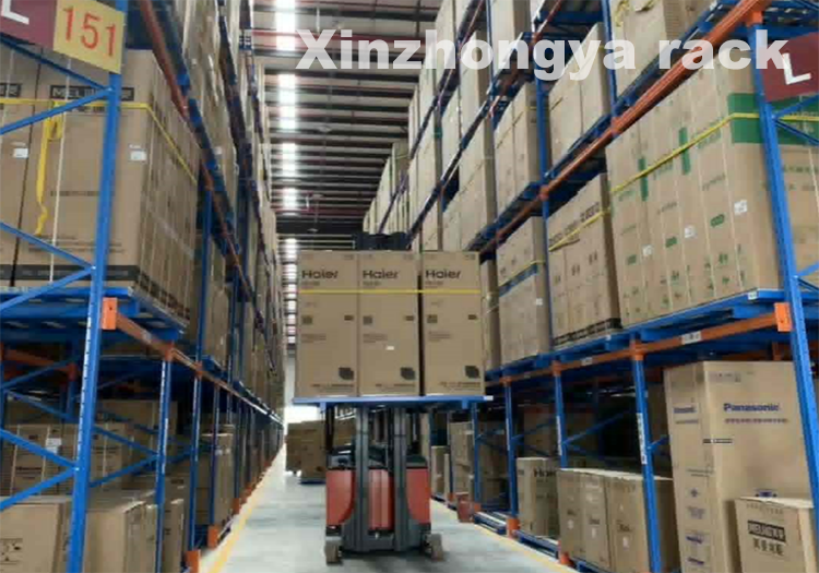 架同为横梁式货架,只是系统的其他部分有所区别,如通道宽度,配合三向叉车货高位拣选叉车用车等